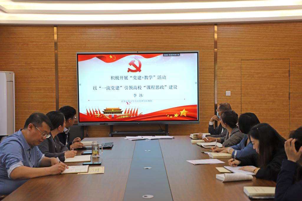 李冰围绕“一流党建引领高校课程思政建设”这一主题,提出以党建工作引领课程思政是实现立德树人根本任务的必然要求,是加强和改进高校思想政治工作的重要环节,是实施“三全育人”方略的重要举措。他认为,做好课程思政,要从马克思主义理论素养、坚定的政治信念、深厚的家国情怀、良好的思想道德素养四个方面提升教师的政治素养。他勉励大家,一要勤学习,不断提升政治素养与业务能力;二要正衣冠,努力做“传道授业解惑”的经师和人师的统一者;三要善思考,积极思考新形势下思政元素融入专业课程的方式方法;四要重实干,确保课程思政落到实处、深化三全育人。