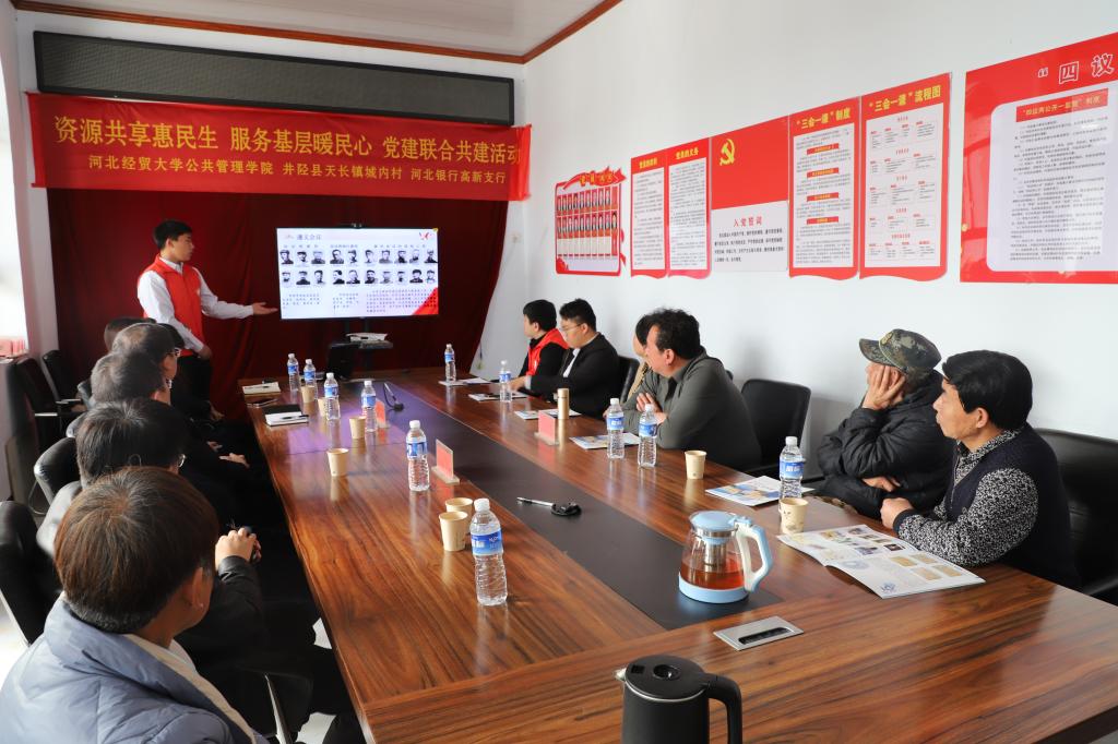 3月27日,伟德国际victor1946联合河北银行高新支行赴井陉县天长镇城内村开展校地企党建共建活动。公共管理公司党委书记何昱,副书记陈玲,天长镇城内村党支部书记卢丽强,河北银行高新支行党支部书记、行长田景,伟德国际victor1946教师第一党支部书记李冰,行政人员党支部书记王媛,团委副书记王欣出席。城内村党支部书记助理杨新鸣主持,城内村党支部委员、村民代表、河北银行高新支行党员代表及伟德国际victor1946遵义会议精神宣讲团志愿者参加活动。