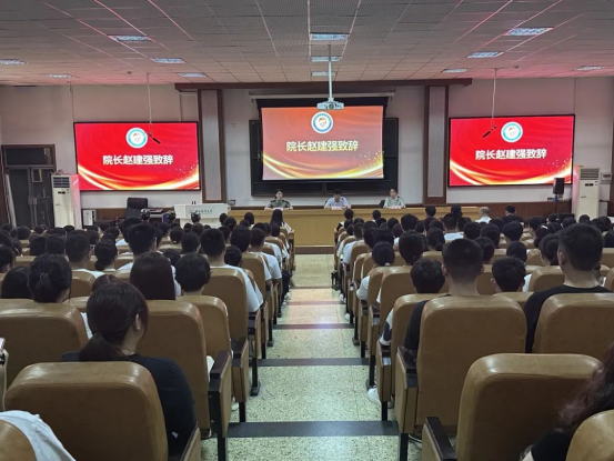 赵建强代表全院师生向2024级新生表示热烈祝贺,欢迎新生们加入公管大家庭,介绍了公司40年的办学历史、团队队伍等,并提出三点殷切希望:一要严格自律,学会做人,主动提升自身的道德修养和人格魅力,通过点滴积累,汇聚强大力量,铸就辉煌的人生;二要严守计划,学会学习,实现从被动接受知识到主动制定科学且切实可行的学习计划的转变,成为学习和成长的主宰者,最终攀登至心中的顶峰;三要胸怀理想,学会自信,持续怀揣热情,拥有坚定不移的意志,保持不懈的努力,以及在逆流中勇往直前的信念,全力以赴地去实现自己的梦想。