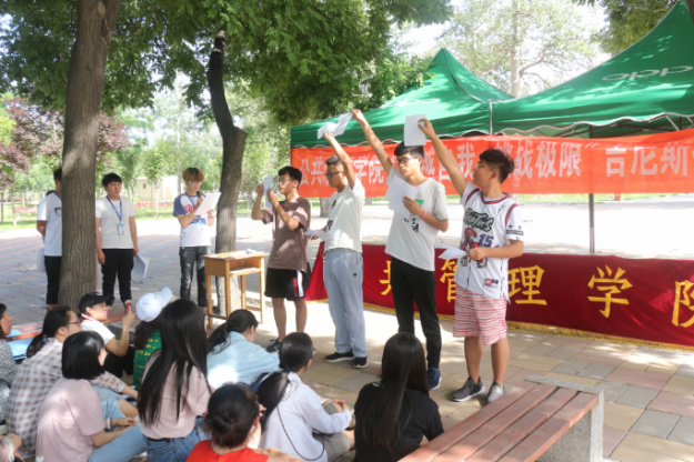 挑战赛分为个人竞技和团队竞技两大类比赛项目。个人竞技比赛包含“公管打字王”、“王者圆周率”、“生活大爆炸”、“玩转魔方”、“微信弹一弹”、“歌名猜猜猜”等项目,同学们积极参与,大胆展示。在“歌名猜猜猜”环节,选手们神情严肃,认真聆听,快速抢答。随着试题难度加大,现场气氛紧张,选手们沉着应对,表现优良,引得观众阵阵喝彩。团队竞技比赛包含“成语接龙”、“集体跳绳”。在“集体跳绳”环节,各参赛队伍成员互帮互助、技巧得当、配合默契,将活动现场的气氛推向了高潮。