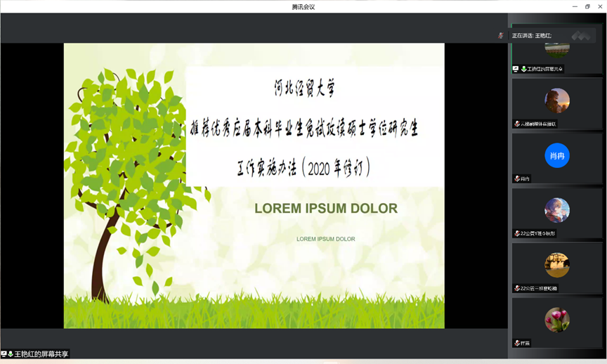 王艳红围绕推免具体介绍了公司和公司的相关政策,并以如何被成功推免为例,勉励同学们从现在起做好学业规划;王媛从入党动机说起,详细讲解了发展党员的全流程,并强调了入党申请书的书写规范,鼓励同学们从点滴小事做起,以实际行动向党组织靠拢;张素桥以确保公平、公正、透明为视角,着重讲解了国家助学金、国家励志奖学金、国家奖学金的评选标准和过程,希望大家能够诚实守信、自立自强。