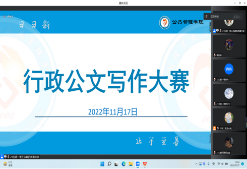 此次写作大赛采取线下+线上的方式进行,线下通过撰写倡议书进行基本功考查;线上答题部分题型多样、涉及广泛,通过材料分析、文章撰写等考查了参赛选手各项能力,比赛过程中选手们都认真对待,严谨作答。经过专业教师认真评阅,王宁、章若涵、杨苗三名同学荣获大赛特等奖;曾雨露、李子如、陈香、冉少静、何佳琪五名同学荣获一等奖;窦安琪、丁爱芳、赵琳、程卓然、范晓阳、贾佳宁、赵李菁七名同学荣获二等奖,郝贝宁、王雅萱、袁心妤、许晨烨、刘虹芊、李鑫宇、吴佳诺七名同学荣获三等奖。