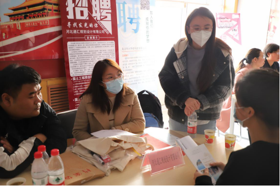 本次招聘会设置1个宣讲主会场、2个咨询大厅和3个面试分会场。在主会场,张学儒8家用人单位莅临公司选聘毕业生表示感谢,并希望校企双方加强交流,创新合作模式,共同培养高质量毕业生。8参会企业从公司简介、企业文化、福利待遇、招聘岗位等方面依次进行了宣讲,并积极邀请毕业生加入自己的企业团队。宣讲结束后,毕业生们拿着自己的简历在咨询大厅与用人单位沟通,企业对初步达成就业意向的毕业生进行了现场面试,双方针对具体岗位要求、工作内容、薪资待遇等问题进行了进一步交流。