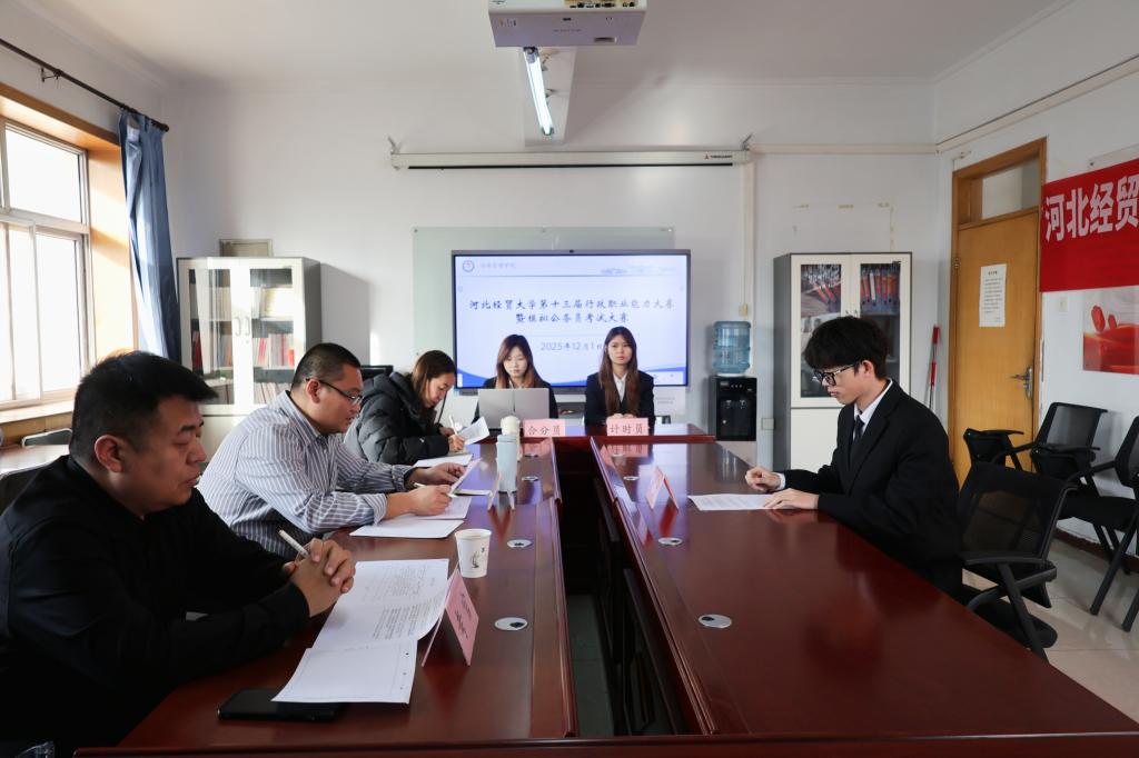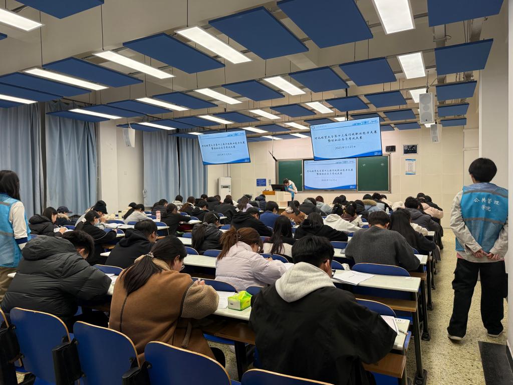 笔试环节于11月25日在第三教学楼B208室、B301室有序开展,考题涵盖言语理解与表达、数量关系、判断推理等多个模块,笔试成绩排名前八的选手晋级面试环节。12月1日,面试在第二办公楼401室、403室举行,考题聚焦时政热点储备、网络信息分辨处理、职场实际问题解决等核心维度,重点考察选手计划组织、沟通协调、应急处理及综合分析等实践能力,全方位锤炼学子的公职岗位适配能力。