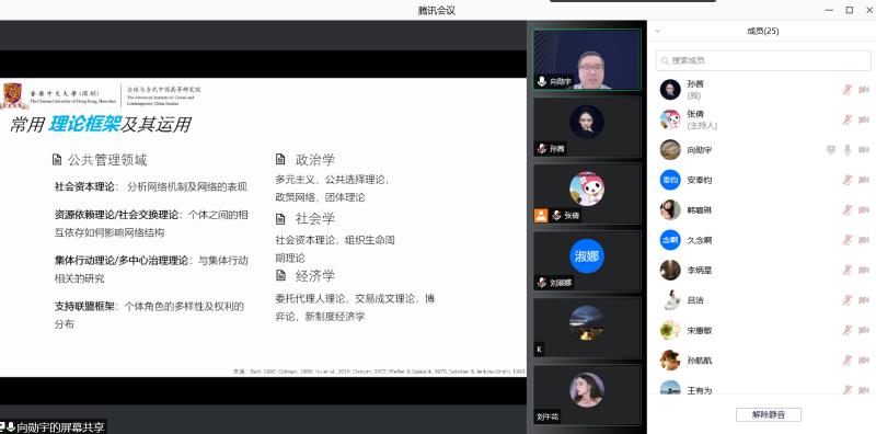 12月10日上午,伟德国际victor1946邀请香港中文大学(深圳)向勋宇教授于线上作题为“网络化治理与社会网络分析—方法与应用”的学术讲座,公司40余名师生聆听讲座。
