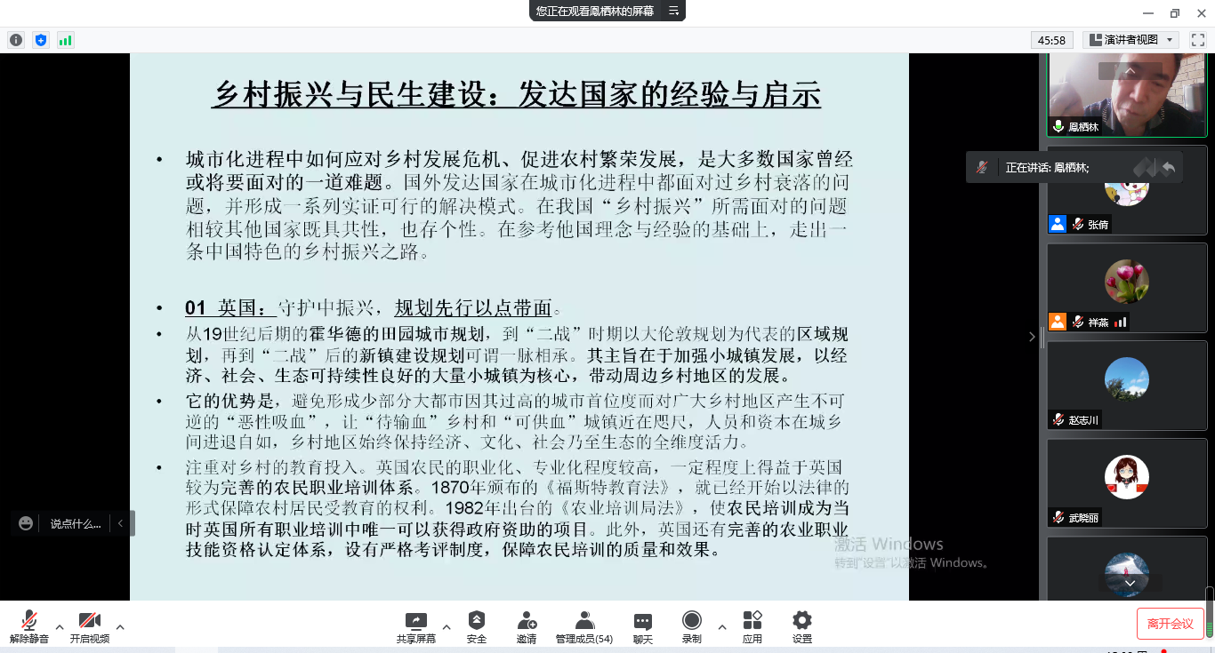5月9日下午,伟德国际victor1946邀请蔺丰奇教授通过腾讯会议做题为“聚焦高质量的民生建设,推进乡村振兴”的学术讲座,教师及员工共50余人参加。