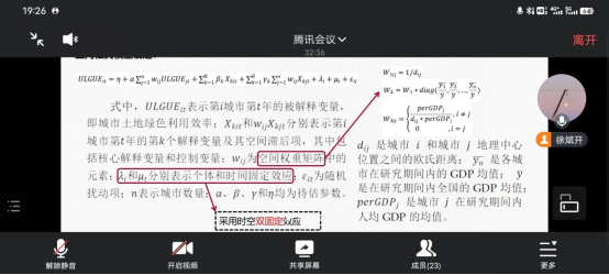 2023年6月6日晚,伟德国际victor1946研究生学术沙龙在腾讯会议平台举行,公司副经理张学儒教授邀请华东师范大学2022级硕士研究生围绕“产业集聚对城市土地绿色利用效率的影响及其时空格局”做了精彩的分享交流。本次讲座由土地资源管理系主任刘蕾副教授主持,公司二十多名研究生参与。