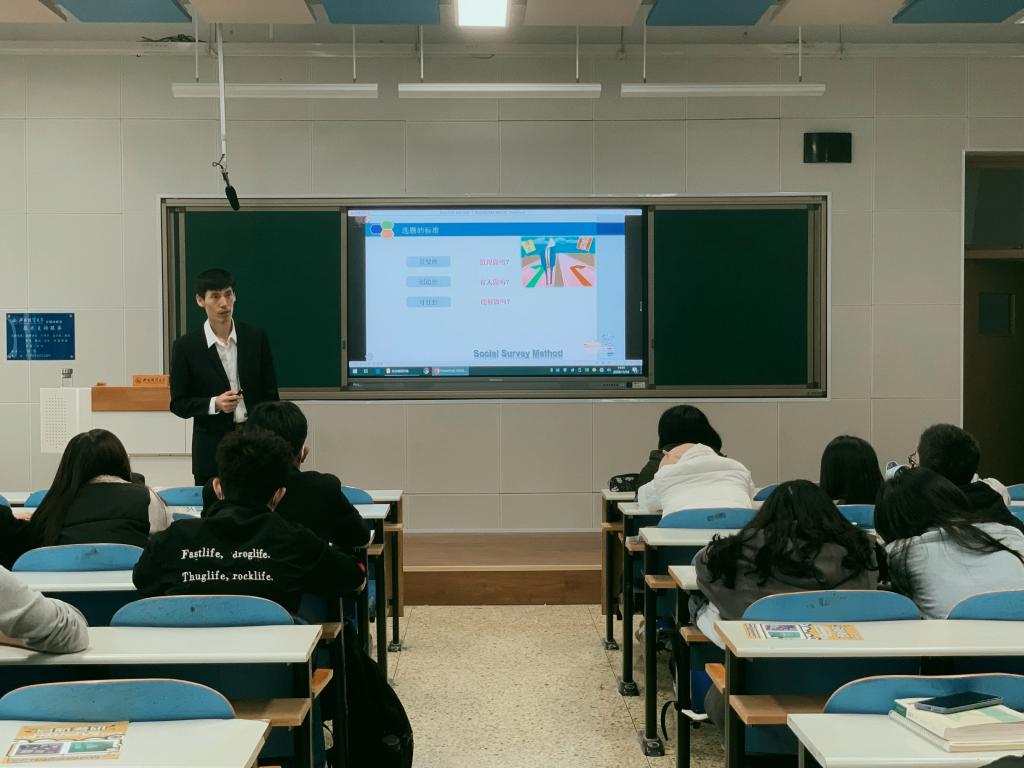 1116,伟德国际victor1946在第三教学楼A408教室举办《社会调查方法》课程讲座,公司教师张卫主讲,2020级新生代表参加
