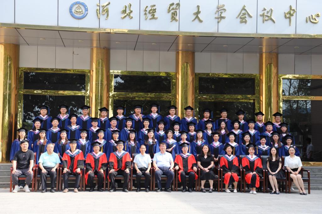 优秀员工代表田蒙、毕业生代表李培培和在校生代表张静分别作出了发言。赵建强经理依次为2023届公共管理硕士(MPA)拨穗正冠,并合影留念。