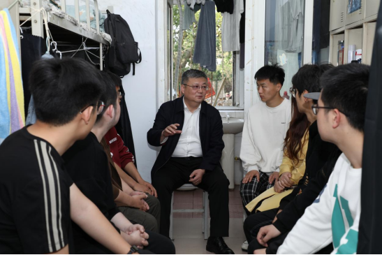 刘兵认真查看了宿舍环境,详细询问了同学们的学习和生活情况,并对同学们提出的问题进行了耐心解答。他以当前的就业形势为切入点,对同学们在学习生活、心理健康、未来规划等方面进行了指导。他指出,作为老员工,要从大一开始做好规划,不断积累。首先,要把学习放在第一位,同时参加丰富多彩的活动来提升自己的综合素质;其次,要注重体育锻炼,保持良好的身体素质,应对校园生活和各项工作的挑战;第三,要参加各种实践活动,在实践中受教育、长才干;第四,要积极参加各类学科竞赛,锻炼竞争意识、团队合作能力和创新能力;最后,要保持积极、乐观、向上的心态,多参加集体活动,多与朋辈交流,融入班级,共同成长。