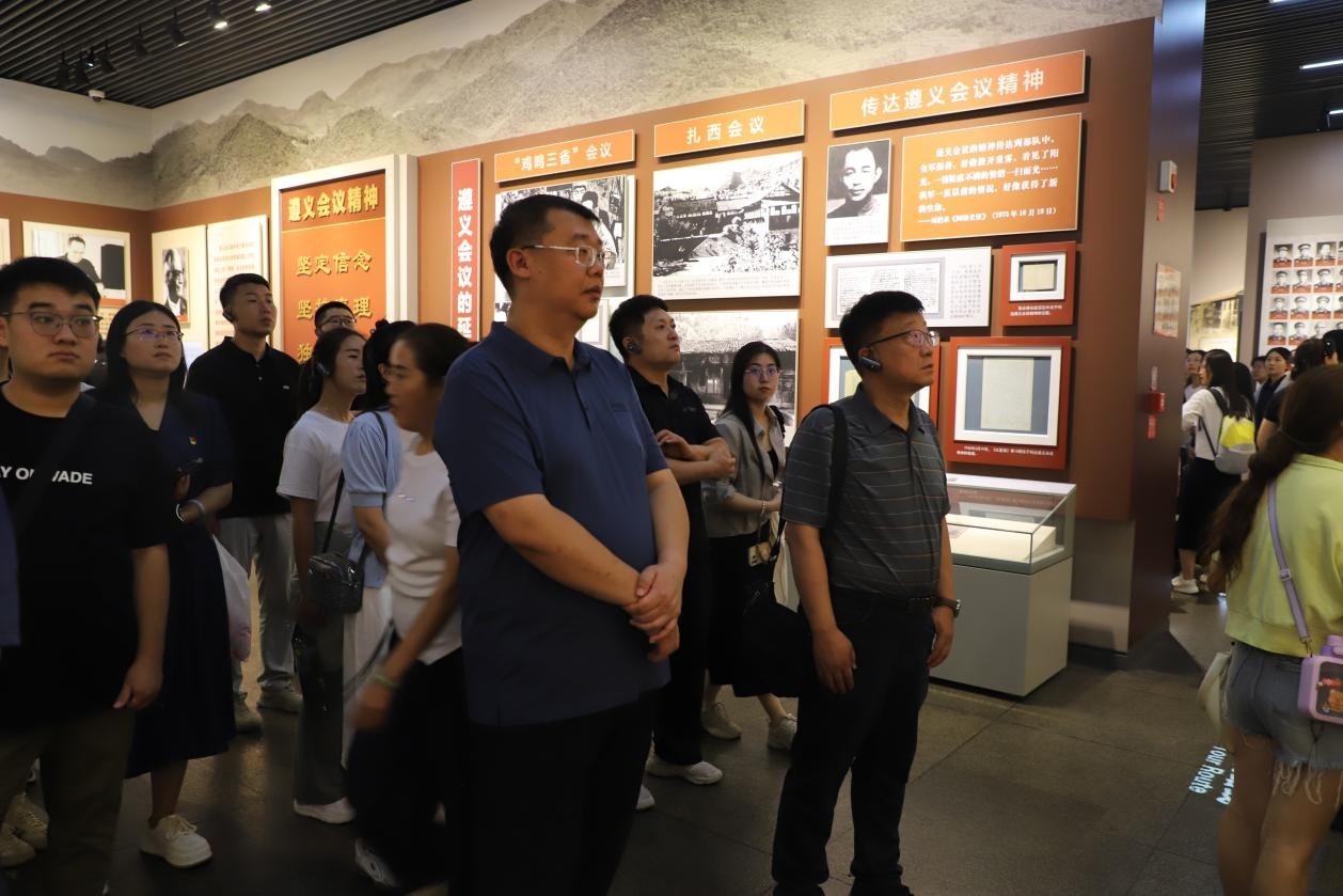 8月8日,师生们首先参观了中国革命的转折地——遵义。走进庄严肃穆的遵义会议会址,同学们通过珍贵史料和沉浸式场景再现,深刻理解了“实事求是”和“独立自主”决策精神,这些历史智慧对当代公共治理有着深远的启示。随后,师生们参访了茅台镇四渡赤水纪念园,生动呈现了伟大的长征精神,红军战士灵活机动的战略智慧,给学员们提供了思考复杂公共问题应对的历史镜鉴。走进茅台镇酒厂,师生们还实地调研了如何通过传统工艺的传承与创新,推动地方经济和文化品牌的建设。在花茂村,曾经的“荒茅田”如今变身为“乡愁”之地,村民们依托特色产业与生态旅游实现了脱贫致富的生动实践。这让学员们深切感受到精准扶贫与乡村振兴战略在基层的蓬勃力量。
