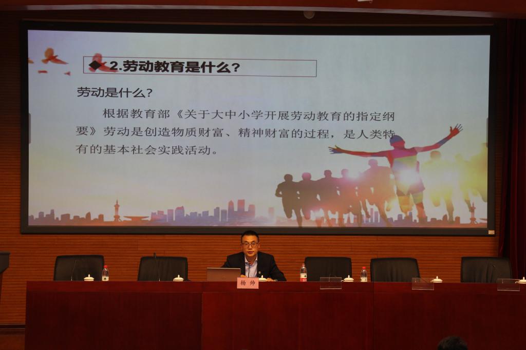 杨帅以爱而知劳为主题,从为什么开展劳动教育、劳动教育是什么、怎样开展劳动教育三个方面阐述了劳动教育的重要性,讲述了劳动教育的两个发展阶段和劳动的三个维度,强调社会主义制度的核心要义就是坚持按劳分配为主体的分配制度,劳动是光荣的、开展劳动教育是非常必要的。他希望同学们通过理论学习和实践体验,树立正确的劳动观念、具有必务的劳动能力、培育积极的劳动精神、养成良好的劳动习惯和品质。
