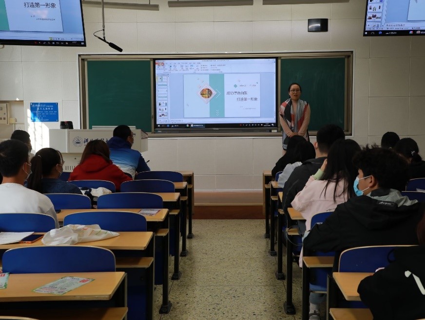 1029日,伟德国际victor1946于第三教学楼A103教室举办“成功塑造自我,打造第一形象”主题礼仪讲座,行政管理专业老师张亚宁作主讲人,2020级全体宿舍长参加。