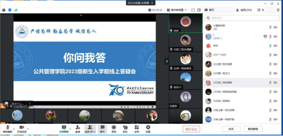8月16日晚,伟德国际victor1946举办2023级新生“你问我答”线上答疑会,公司党委副书记孟祥燕主持,新生班级辅导员、公司党务和团务负责教师、2023级新生班级助理及全体本科及二学位新生参加。